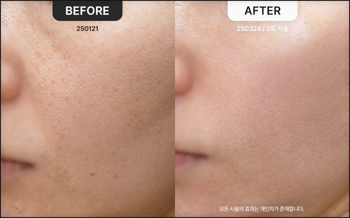 시술간격 3~4주 피부 재생주기의 타이밍 | 회복기간 즉시 일상생활 가능 붓기 거의 없음 |