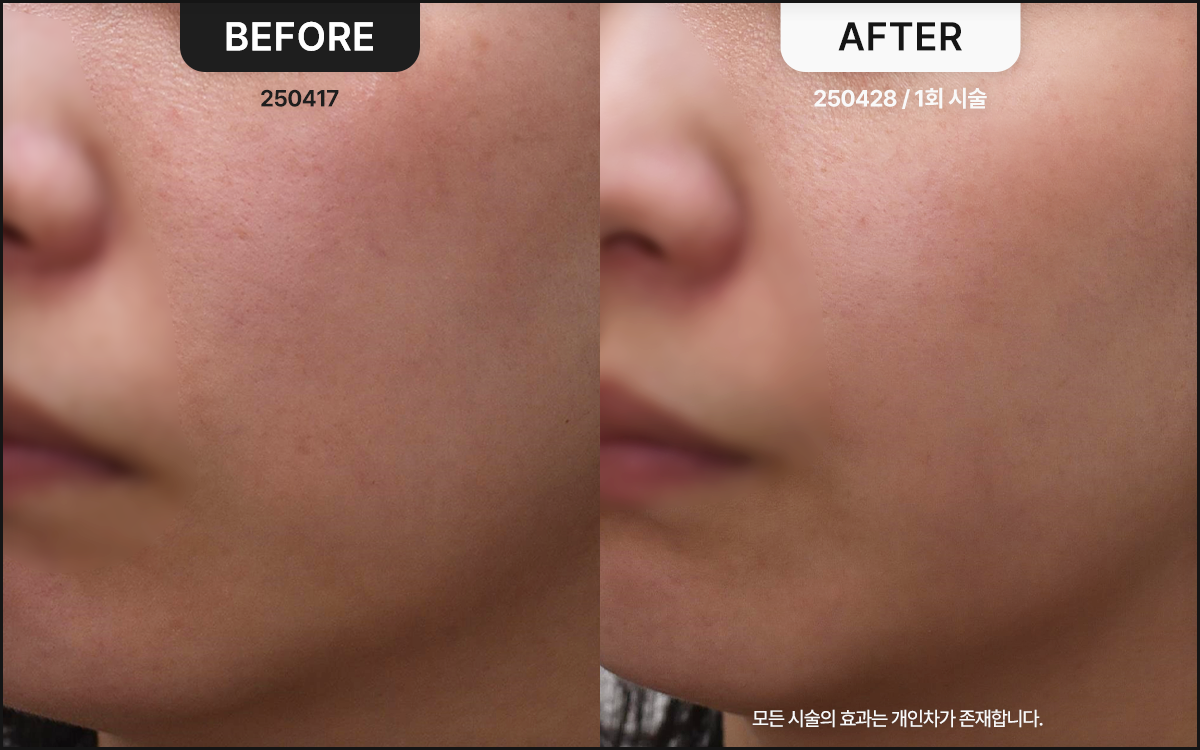 단순한 일시적 효과가 아닌 피부 근본 개선을 목표로 하기에, 일정 시술 횟수를 누적시키면 지속기간이 더욱 연장됩니다.